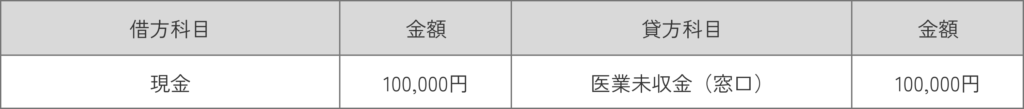 重要なのは、貸方の「医業未収金」は必ずシステム上の正解の金額(100,000円)で計上することです。