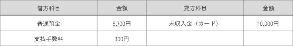状況: 先日のカード売上10,000円について、手数料300円が引かれ、9,700円が入金された。
