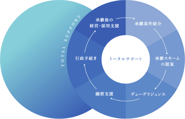 承継前の準備から承継後の経営安定化まで、トータルでご支援いたします。